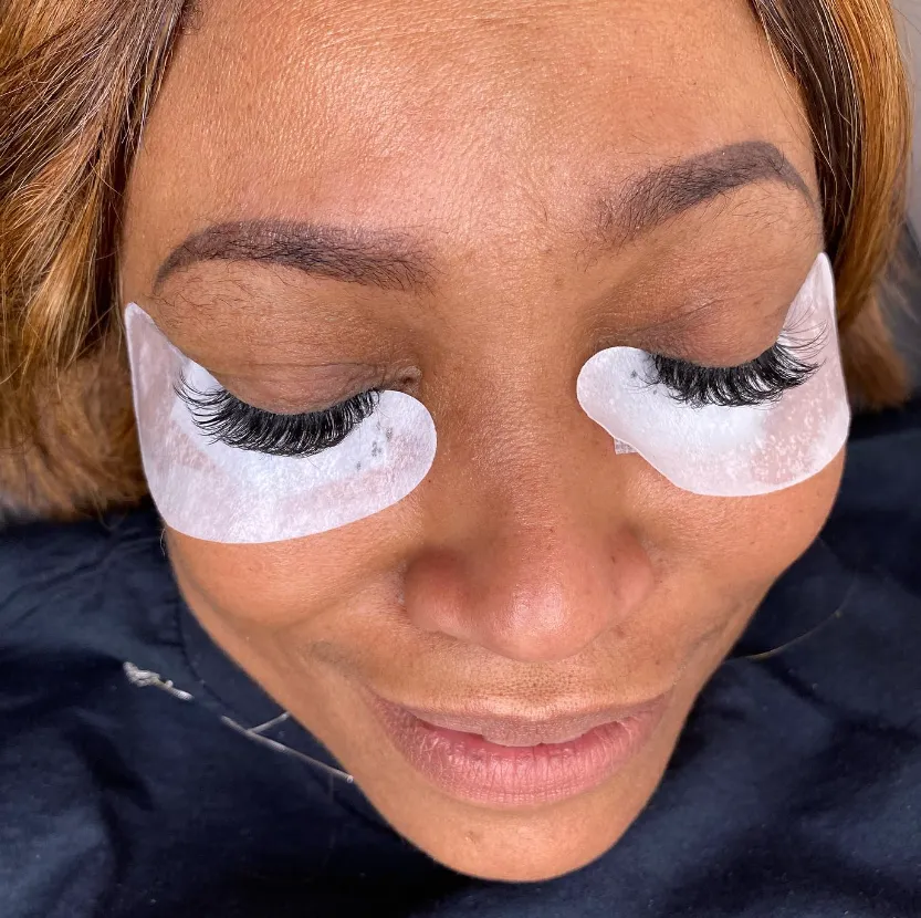 Hydrogel Lash Pad Application to not only isolate the top lashes from the bottom, but under-eye hydrogel patches to enhance moisture to dark circles under the eye, and treat any fine lines.